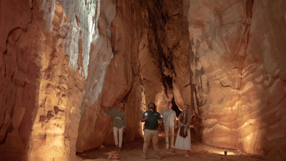 Please note that this experience will be paused during the summer, from 1 May until 15 September. It will be replaced with an immersive experience following the same itinerary and cost, but with the added value of a sand art projection to marvel at after dinner. Please visit The AlUla Story - Dinner with Projection to book your experience.